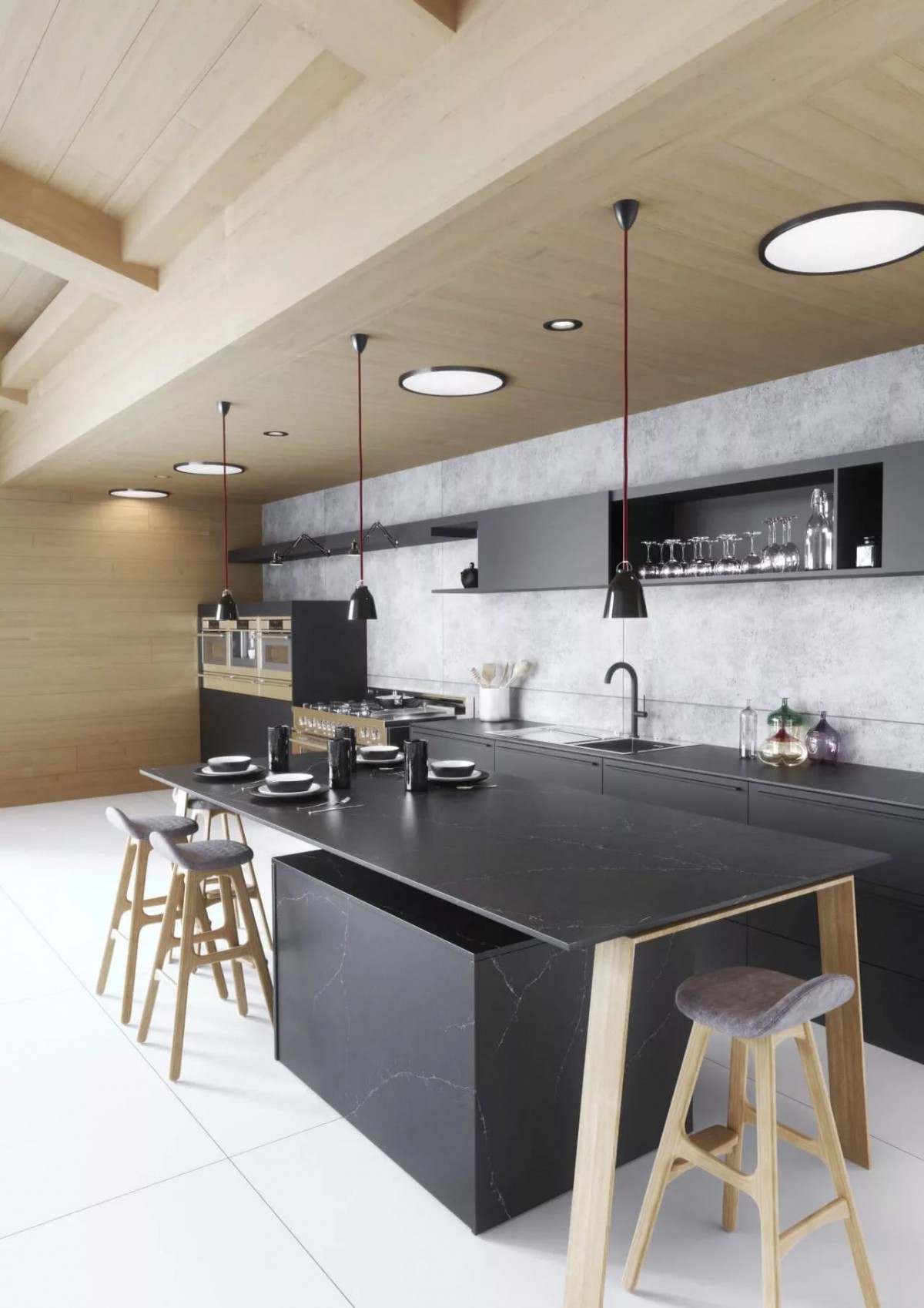 当厨房的中岛变成一个整体的平面时,它到底是一张桌子还是一个吧台呢?它都是!