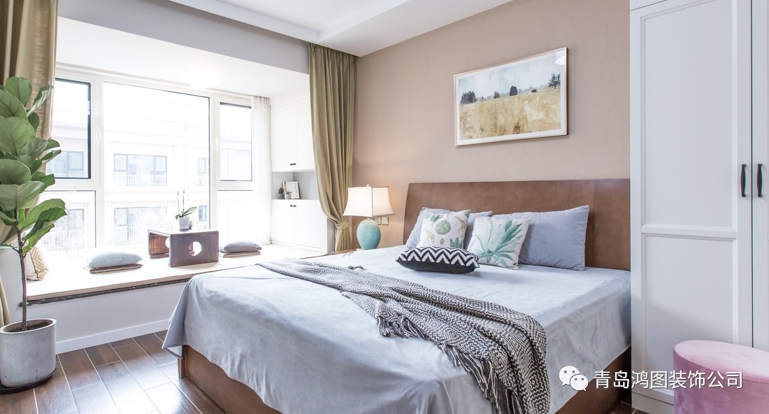 卧室宛如一位清新的少女,让人爱不释手,温馨床品搭配一幅质感满满的装饰画,让人不禁少女心爆棚,再加上独特的飘窗设计,舒适中不失中式韵味,让人切实感受到其中惬意十足的幸福。