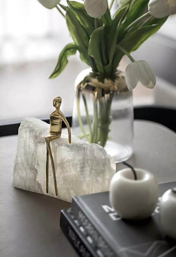 陈设中引入各种姿态的人物,仿佛是生活在大房子中的童话人物。他时而托腮思考,抑或侧耳倾听活灵活现,增加着空间的趣味。