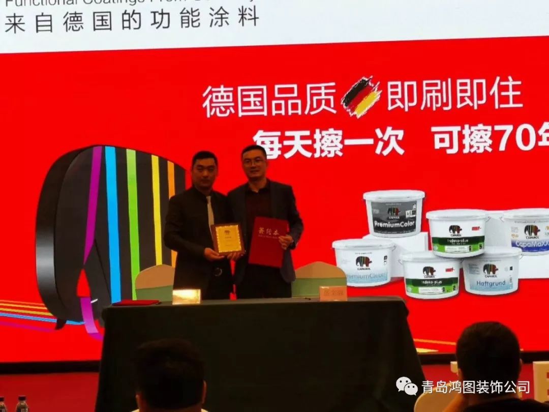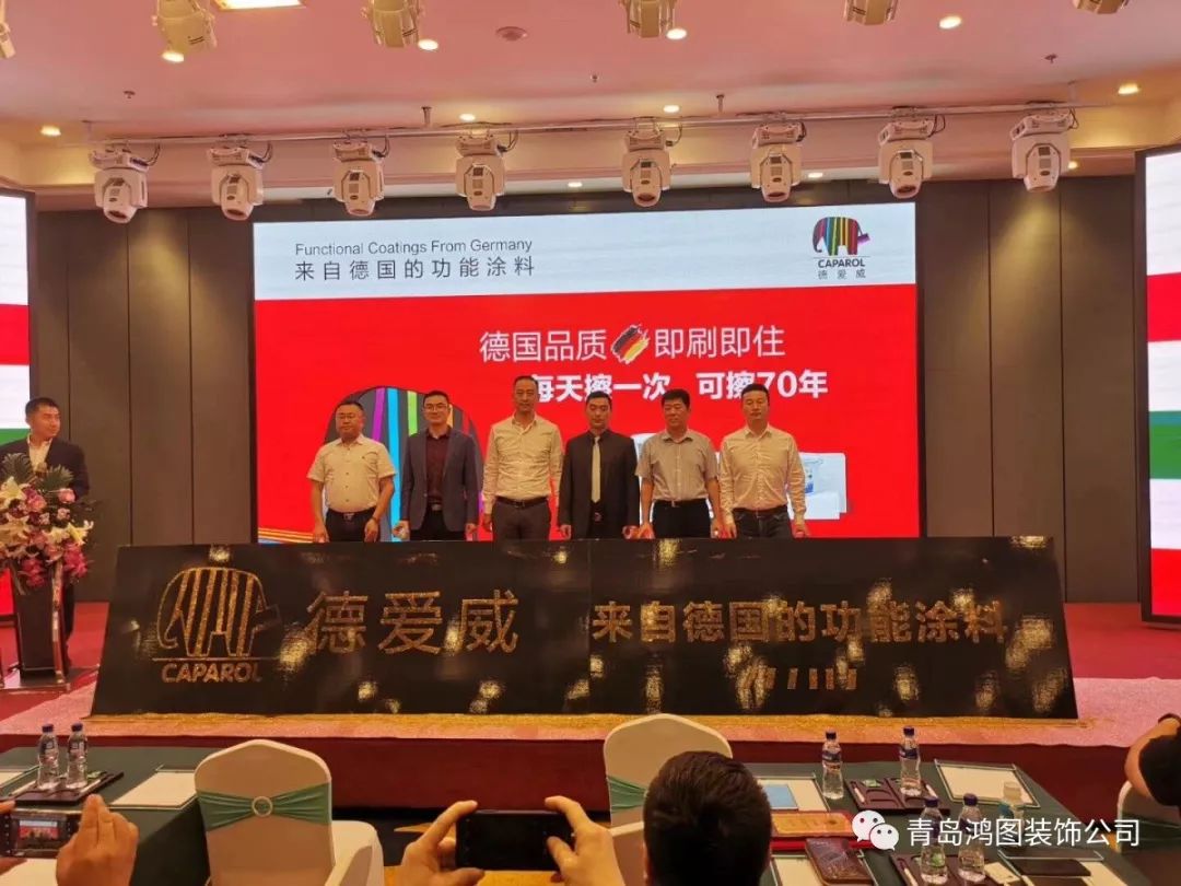 2019年烟台首届基辅材产品推介会如期举行,在本次会议中,大家一起见证了两大企业的珠联璧合——鸿图装饰与德爱威涂料签约仪式。