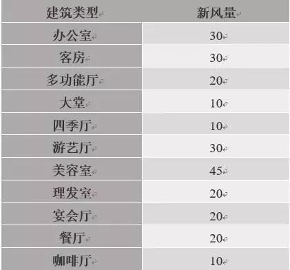 表1民用建筑每人所需最小新风量(每人m³/h)