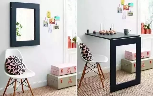 可折叠餐桌这种餐桌折叠前可能是一个普通桌子,一个矮柜,一块木板,甚至一块镜子,根据实际需求折叠后可以更换形状或变大变小,也非常适合小户型餐厅。