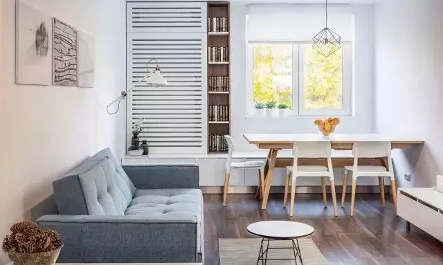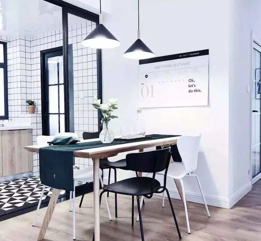 将餐桌放在角落的位置,无疑是节约空间的重要法则,哪怕空间再局促也能给餐桌留一个重要的位置。