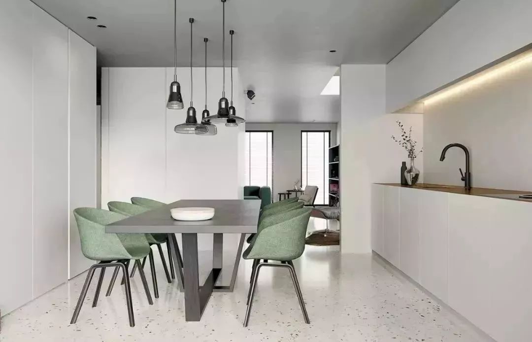 因为小户型面积有限,一旦用实体墙把餐厅和厨房划分开,无论是做饭还是吃饭,都会感觉很压抑。这时候打通墙面,就能大大提高空间的利用率,解决空间不足的问题。