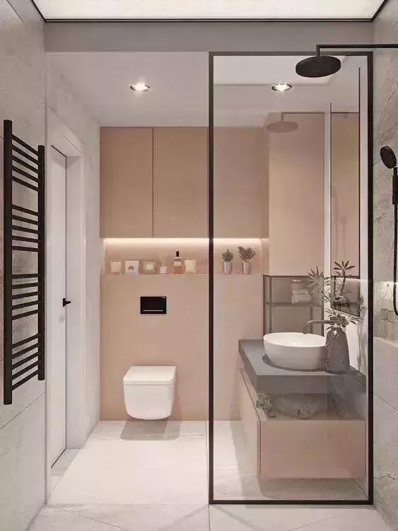 再者,利用纯白色等可以提亮的瓷砖,加上通透的玻璃隔断设计,都能很好地解决这一问题,从视觉上改善光线不足的缺点。