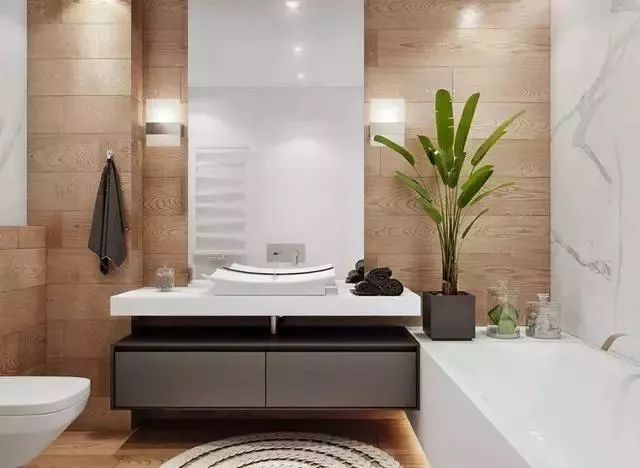 针对卫生间采光不足的问题,其实也有很多的小妙招。比如:除了顶面的主灯之外,你也可以加入其它的辅助灯光。