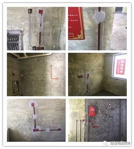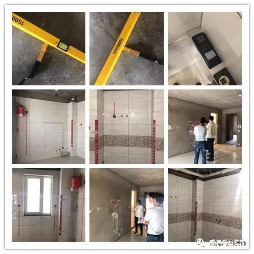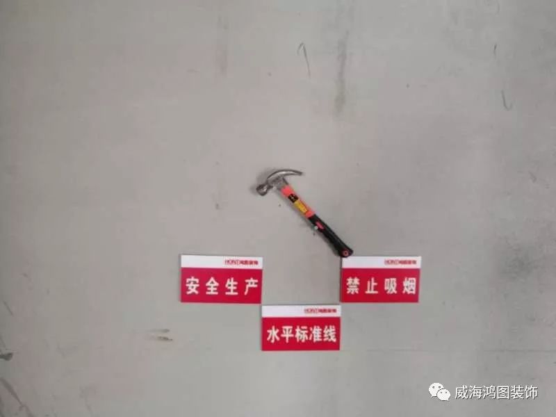 5.墙面粘贴鸿图专用水电走向指示标识,对于瓷砖内部的水管和电线,若不在前期做好相应的走向标识,后期在安装大量五金挂件的时候,会存在损坏墙体内部管线的风险。鸿图装修就是要内外兼修,把匠心渗入到每一处!
