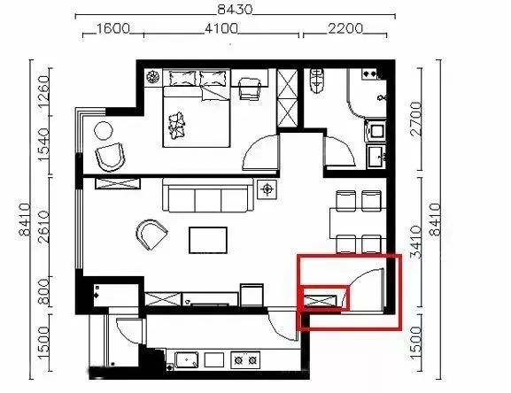 ◆大门正对客厅和餐厅,左侧要放电视,所以只能把玄关柜放在右侧。