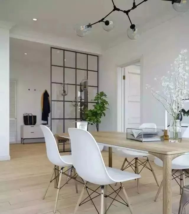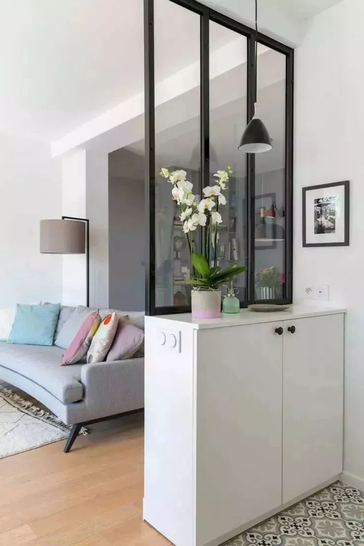◆在玄关与客厅之前,安装一扇玻璃隔断,隔断前放盆绿植,既能隔绝视线,有不影响采光。