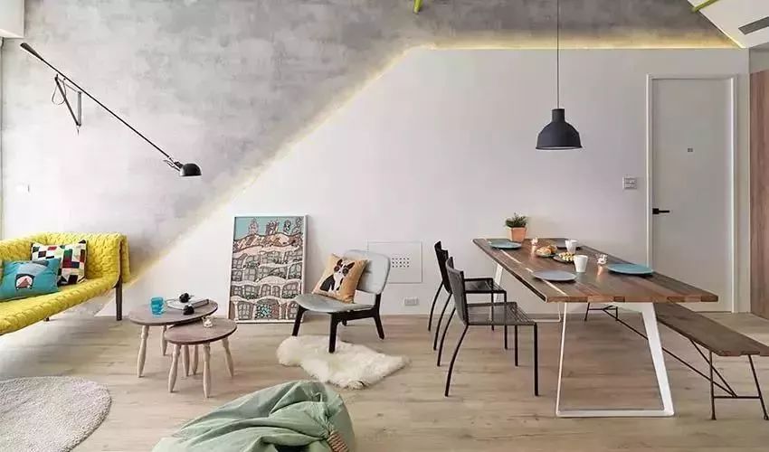 ◆餐厅没有窗户,离阳台也较远,除主灯外,可安装一些筒灯辅助照明。