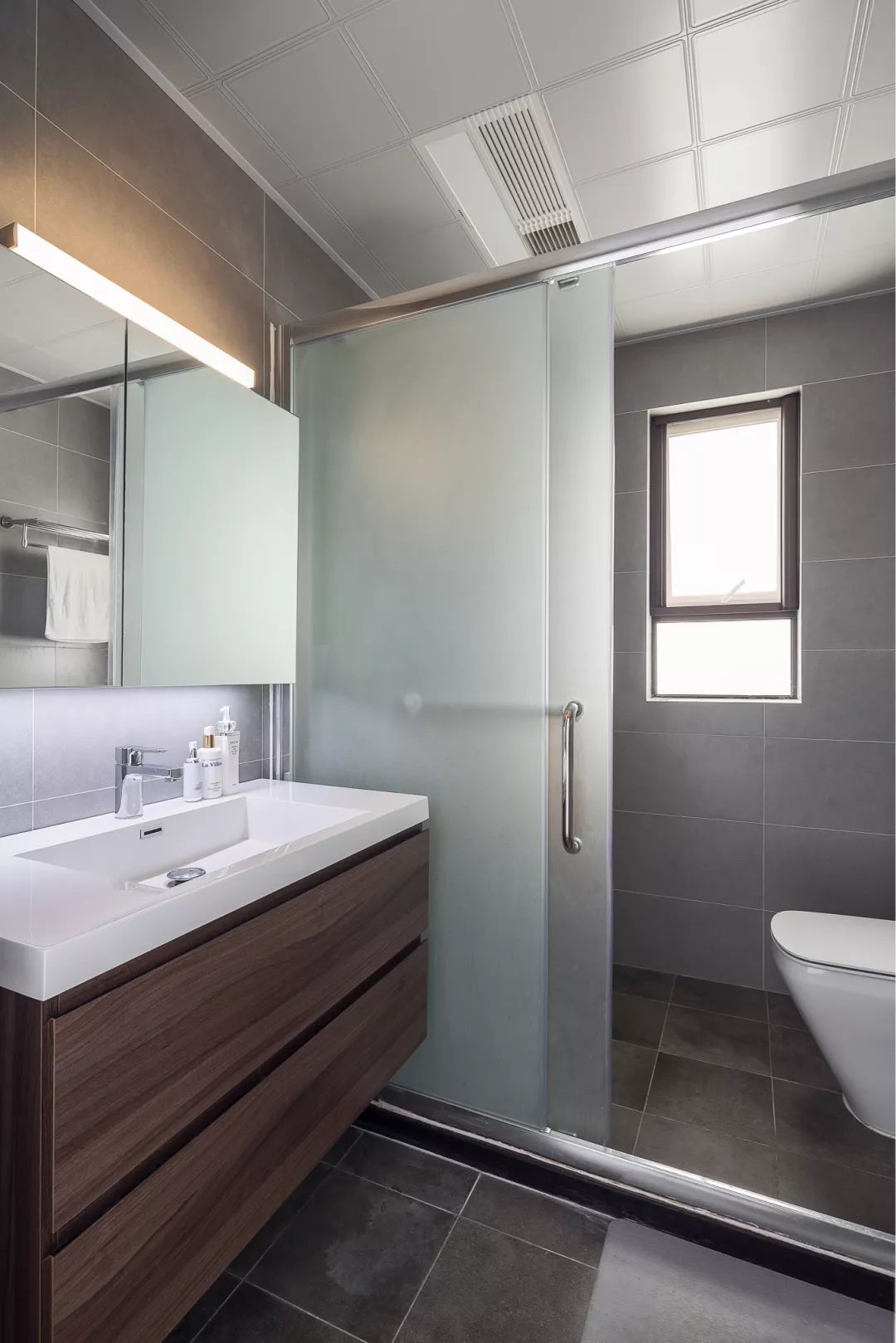 干湿分离的卫生间,把马桶也放在了淋浴区内,这是很多比较小的卫生间的做法,毕竟马桶更不容易被水侵蚀、弄坏。
