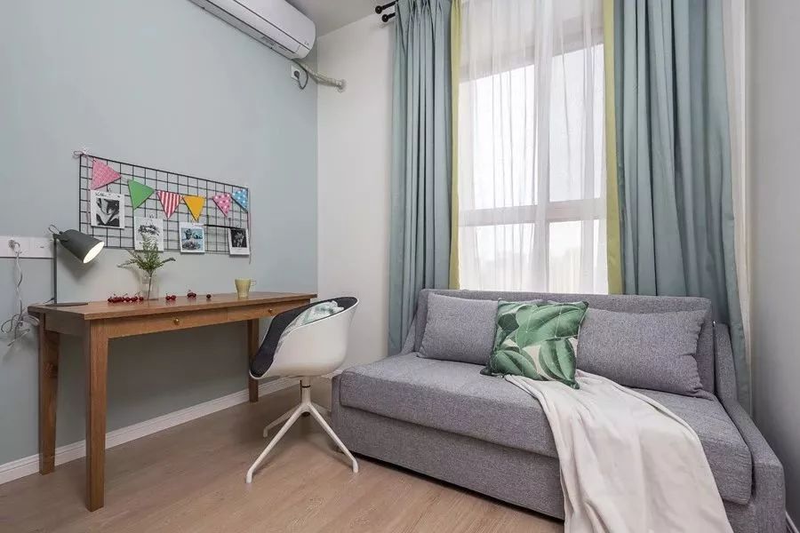家里还有一间比较迷你的卧室,被屋主改成了一个小书房,书桌靠着墙面摆放,在书房内也放了一张沙发床,家里来客人了就可以用上。