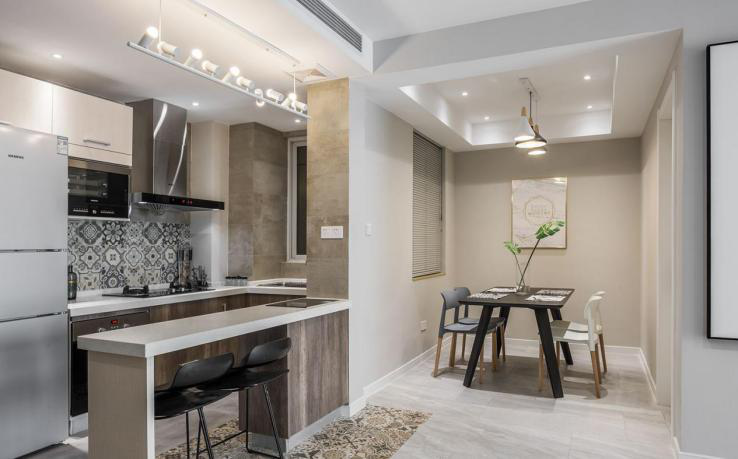经常下厨的人知道,夏天在厨房做菜就如蒸桑拿,可能有的家庭会在厨房单独装置空调,而这种开放式厨房就完全没有这样的烦恼。在舒爽的空调间为家人下厨,不失为一种享受。