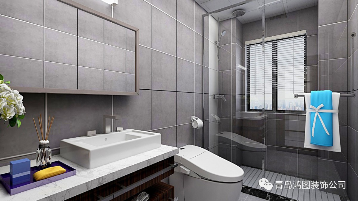 卫生间干湿分离的设计,实用方便,通铺的灰色瓷砖,让空间沉稳有格调。
