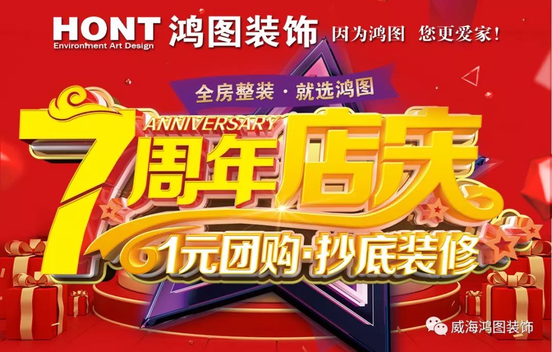 鸿图装饰“7周年店庆”1元团购,抄底装修