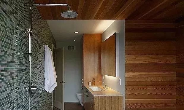 可以将沐浴区和马桶放在卫生间里面,而洗手台设计在外面,中间用门进行隔断。这样单独的洗手台区域可以避免上厕所和洗刷冲突,比较实用。