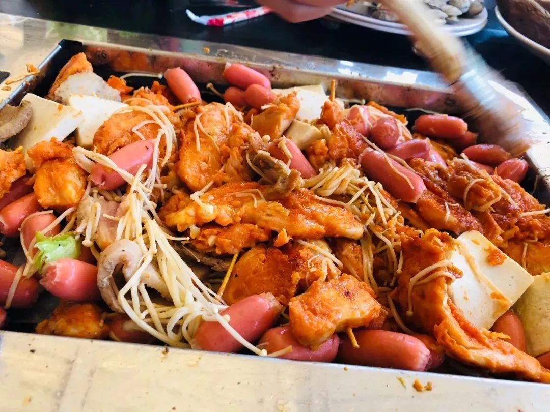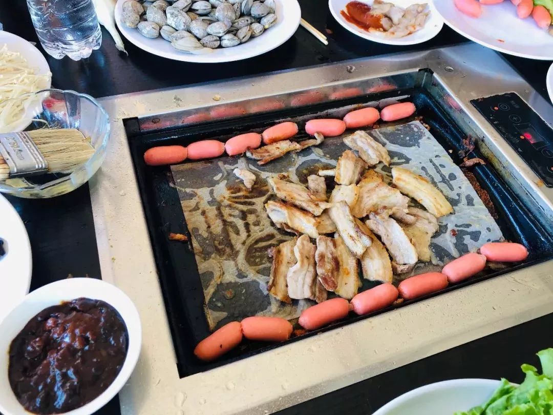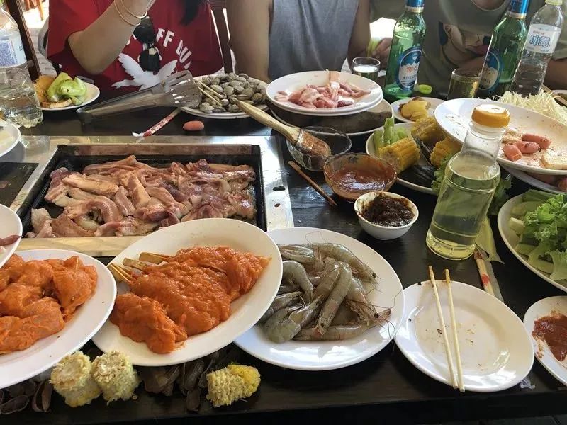 烤肉,海鲜,一样都不少,上次就说了我们鸿图厨艺藏龙卧虎,只要一出手,便是光盘的节奏,喷香的肉,好喝的酒,嗯!好吃!咽口水你就输了!那我们先吃为敬