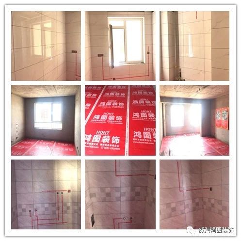5.墙面粘贴鸿图专用水电走向指示标识,对于瓷砖内部的水管和电线,若不在前期做好相应的走向标识,后期在安装大量五金挂件的时候,会存在损坏墙体内部管线的风险。