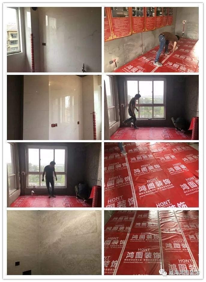 3.地砖铺好后,我们会用鸿图装饰专用地贴对地面进行成品保护,避免后期施工和材料搬运对地面造成的污染和损坏。