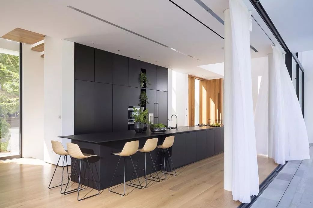 雪松绿窗帘的加入像是在铺展的画布中渲染出的浩瀚森林,又如同是在徐徐海风中沙沙作响的棕榈林。别有一番如诗如画的韵味。
