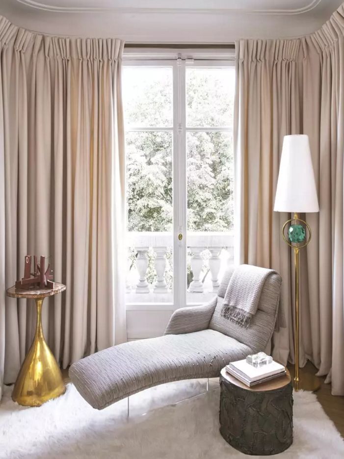选择窗帘时,要根据窗户的实际尺寸来定,才能展示最美的一面。一般情况下,平拉式窗帘在窗框两侧各留出15公分的宽度,视觉效果最好。