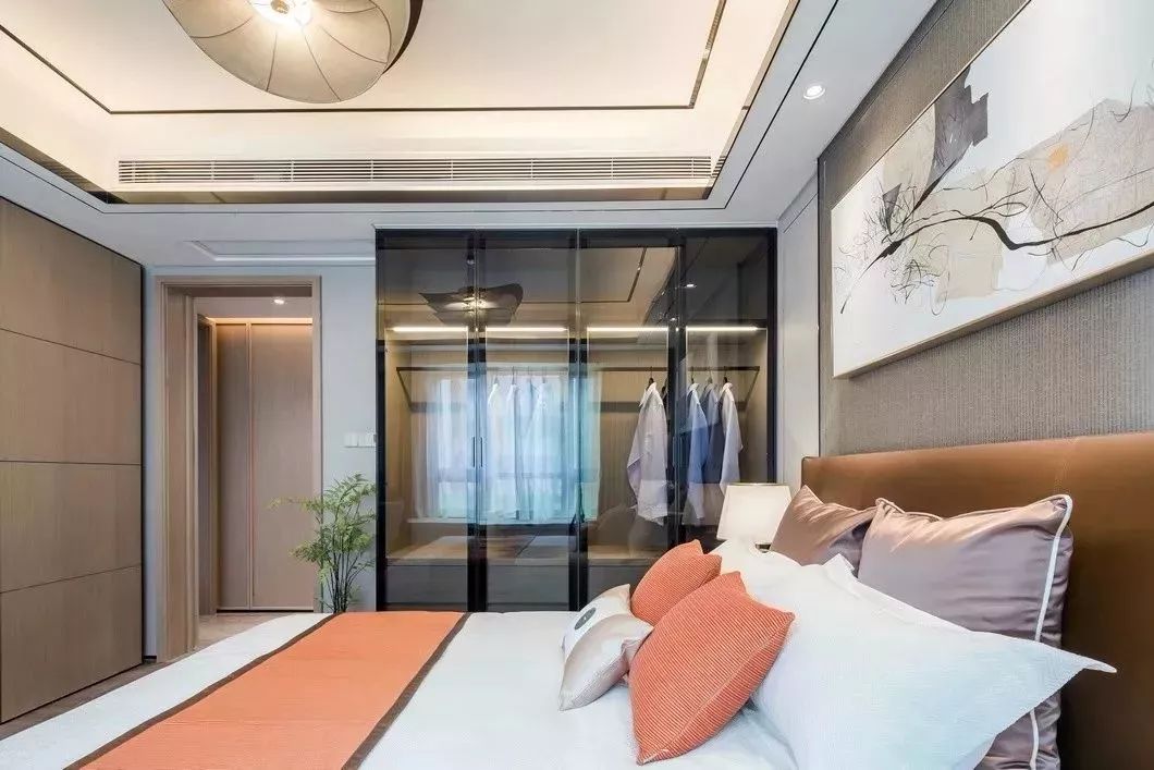 相比白色的衣柜,木色更加适合像中式风格等比较庄重高档的卧室风格搭配,这种搭配的整体效果给人以高档端庄的视觉氛围。