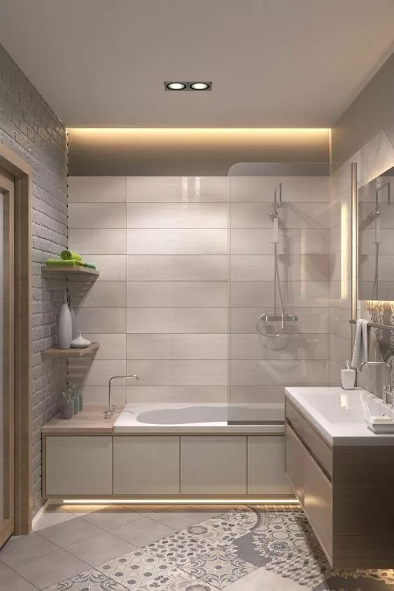 对于这种浴缸需要特别的设计,底部最好有防滑纹,以防在淋浴的时候摔倒,浴缸靠墙安装了花洒,这样装卫生间,我们既可以站在浴缸里淋浴又可以泡在浴缸里沐浴,真实一举两得啊!