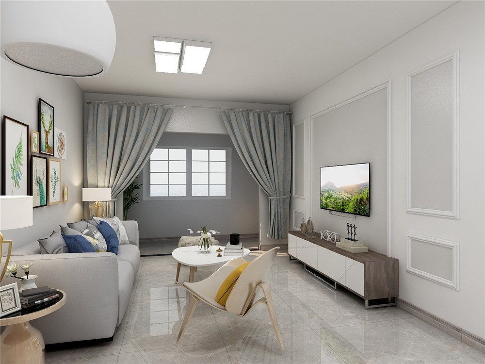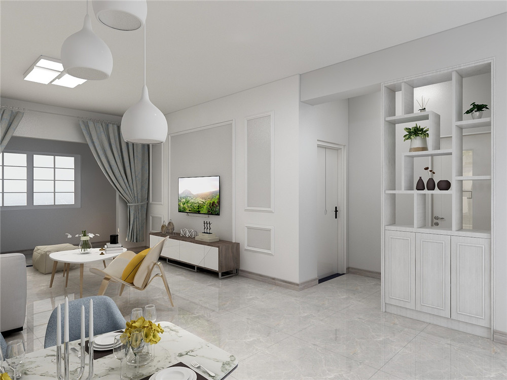 北欧本身物资匮乏,日照时间短,所以运用以白色为主设计会显得家里更加明亮。家具采用轻快的现代家具会显得家里特别宽敞。电视墙采用石膏线条加乳胶漆调色,简单大方。对称设计的电视背景墙更加符合有强迫症的业主的审美眼光。