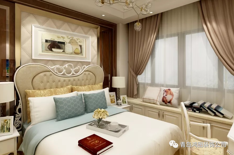 主卧空间舒适又有气质,独特的床头造型,个性有品味,搭配浅色床品和挂画,温馨优雅。独特的飘窗设计暖心十足,摆上抱枕和书籍,便可安静的享受属于自己的阅读时光。