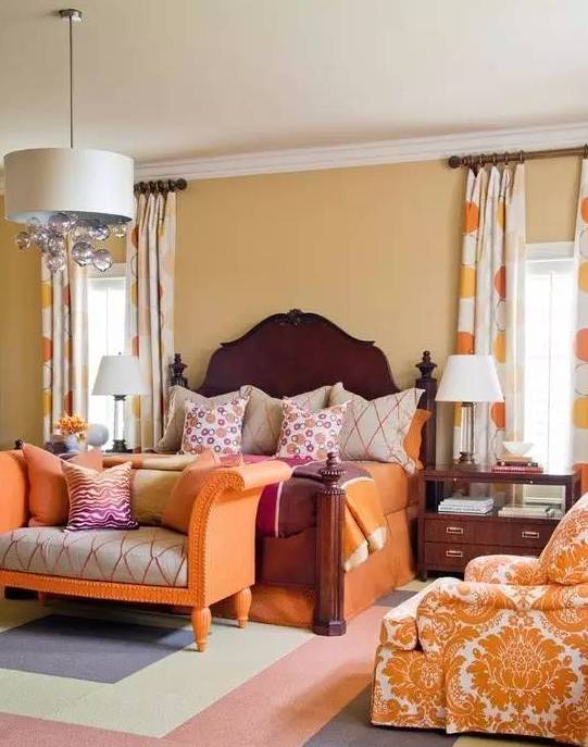 老年人的居室可以用浅橘黄色搭配,可以诱发食欲,有助于钙质的吸收,而使人精神振奋,心情愉快。或选择蓝色,有助于减轻头痛、发热、失眠等症状。