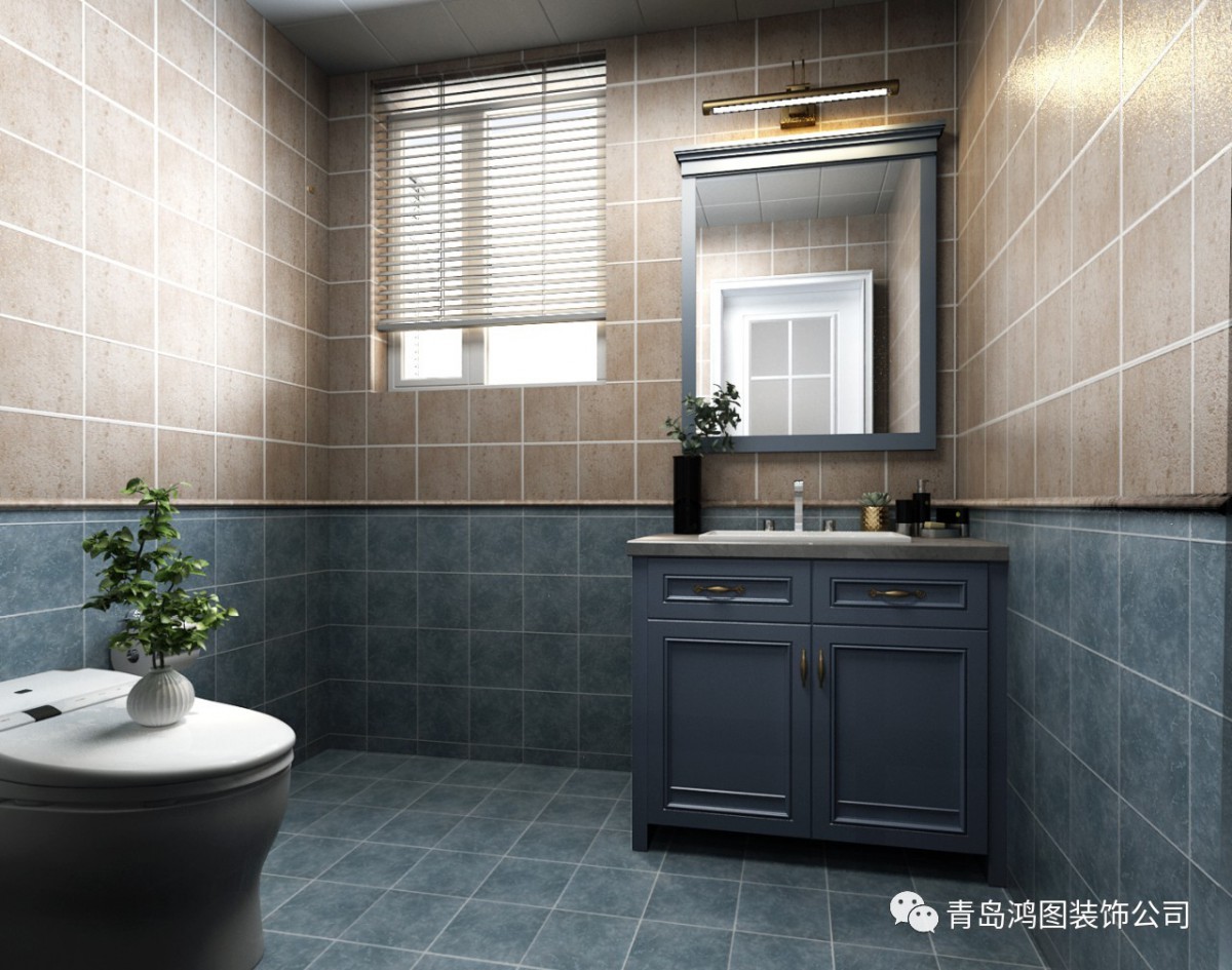 和谐是欧式风格的最高境界,雾霾蓝色墙壁与洗脸盆柜完美统一,清新又时尚,通过细节体现业主的精致与贵气。