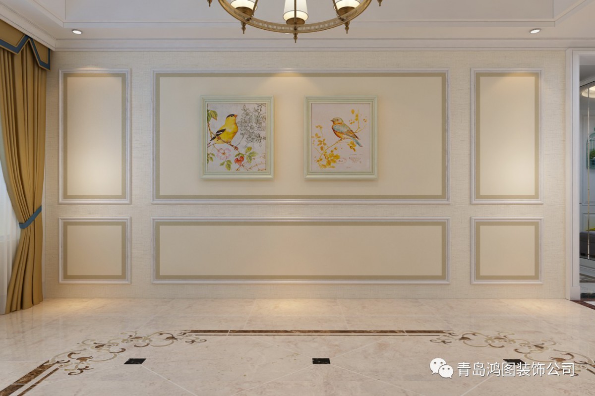 用石膏线装饰墙面,充满了立体线条感,与装饰画搭配,让整个客厅更生动立体,艺术感十足。