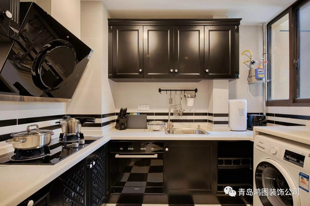 厨房同样以黑白色为主色调,强调几何的秩序感与形式美,时尚立体。