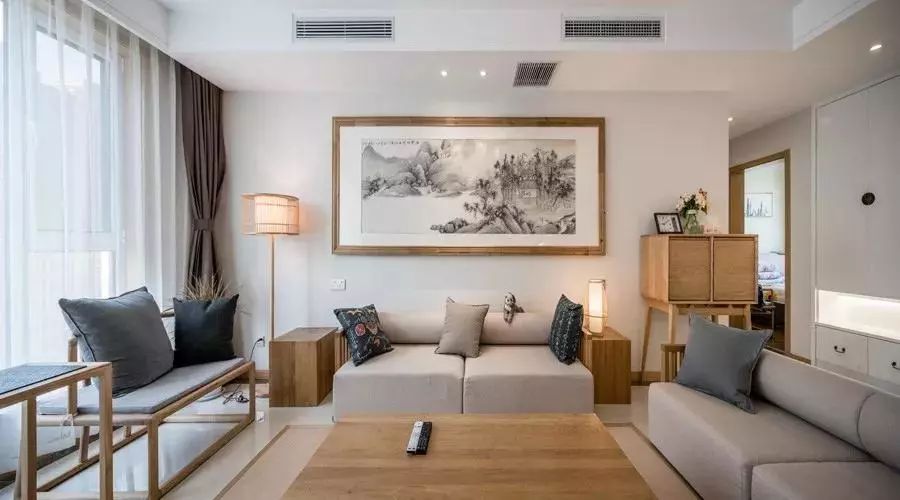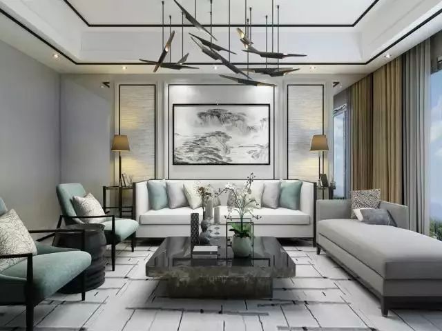 邈远宁静的中国水墨灰,悠然内敛。在新中式沙发背景墙中常以缥缈的山峦叠影示人。让你客厅自有几分悠然意境。