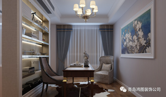 书房为了凸显专属屋主的低调沉稳,使用温润木质、时尚金属线条与沉稳灰色布艺,围塑深邃精致,交织出时髦个性又不过于冰冷的空间氛围,阅读办公都能成为十分惬意的事。