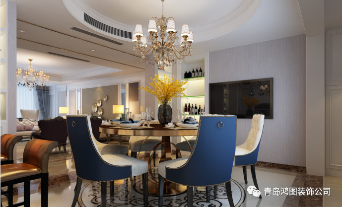 餐厅为了凸显家庭氛围,特意选用圆桌,连同地砖图案也特意选用圆形,圈出尺度流畅、祥和亲密的生活格局。