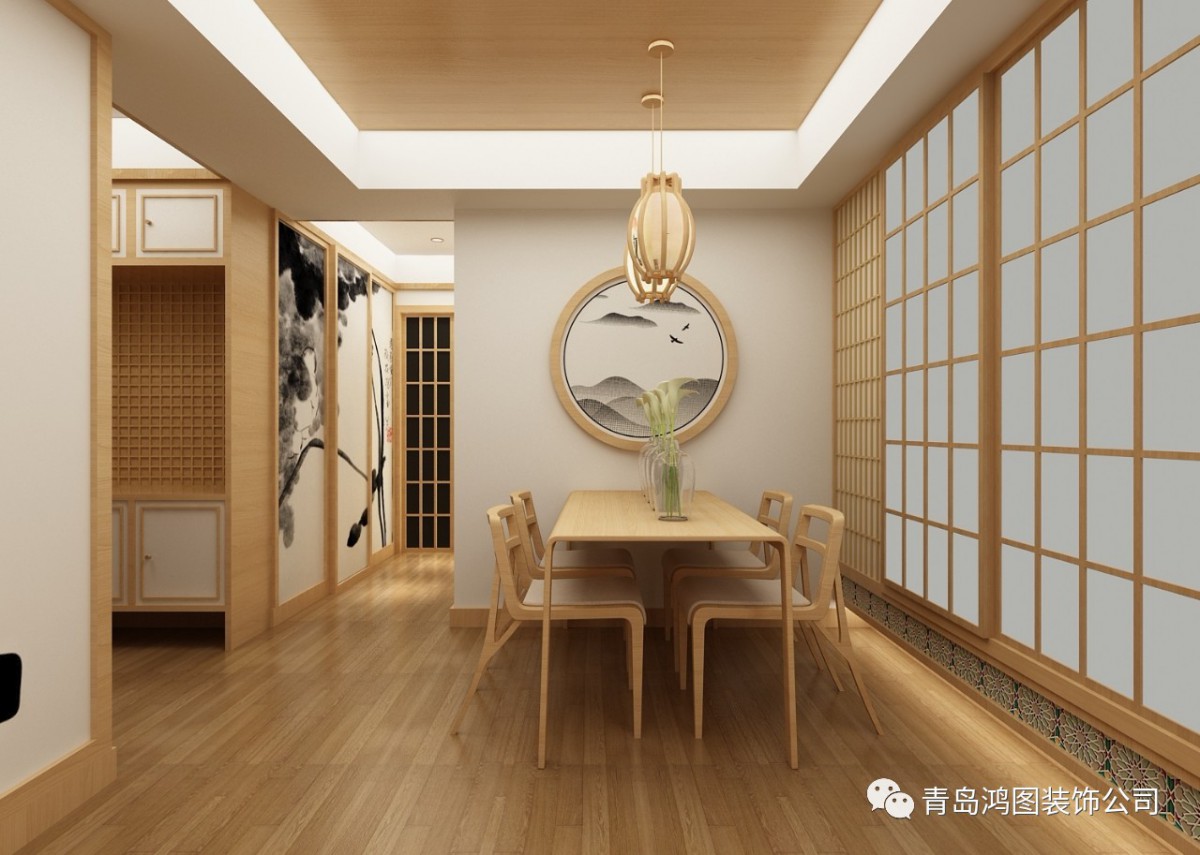 餐厅不推崇豪华奢侈,以淡雅节制、深邃禅意为境界。餐桌椅线条流畅,造型简洁,没有过多的繁杂,营造出简单自然的生活气氛。在这样的环境中用餐,惬意又幸福,显出日式家居的清新与大气。