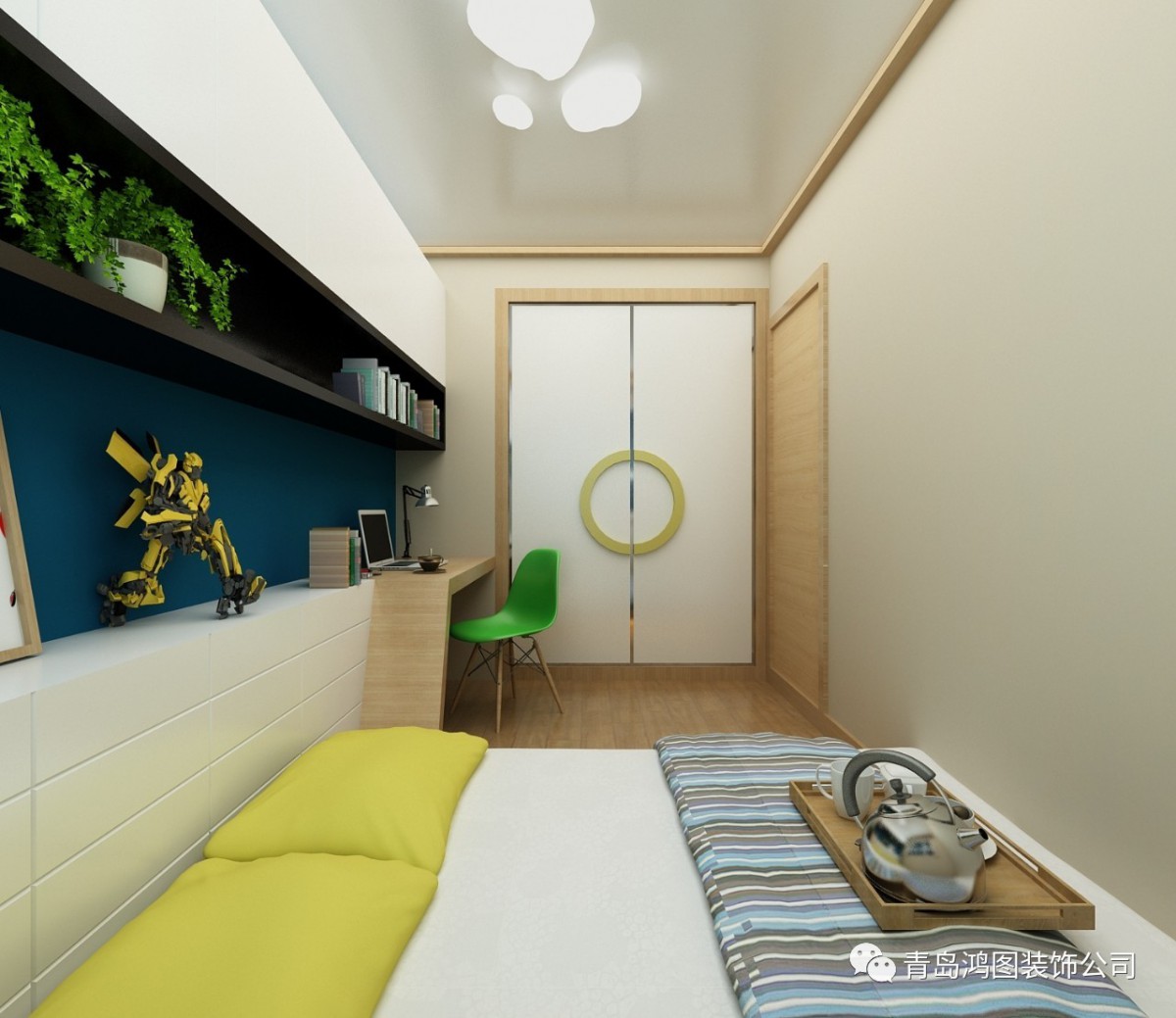 卧室的顶灯是亮点,造型极具艺术感。床头的壁龛可以随意摆放几本睡前读物,也可以摆放上自己喜爱的手办藏品,卧室也能成为自己的”秘密基地“。