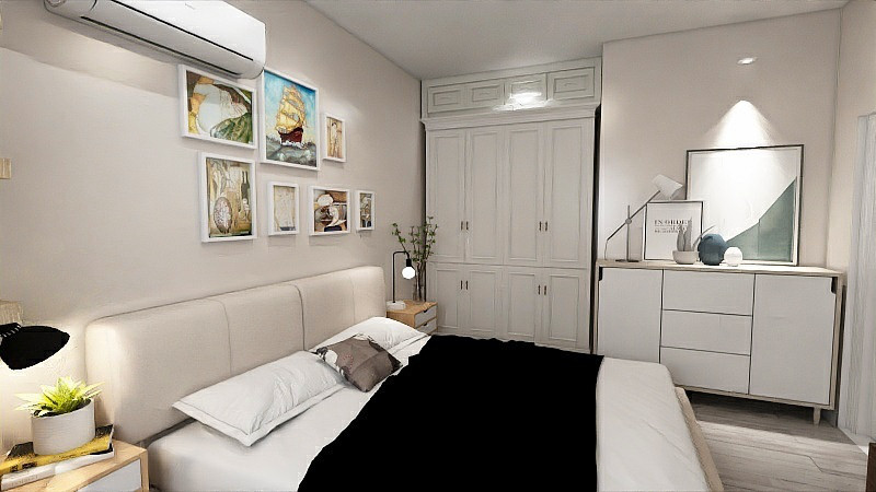 软包白色皮质床头,简洁大方,富时尚气息,又方便清洁,十分符合年轻人的审美。各具功能的柜子轻松收纳各种衣物,将整个空间物品收拢的井然有序,墙上的挂画增添了艺术感与人文气息。在这样的环境中休息,怎能不热爱生活。