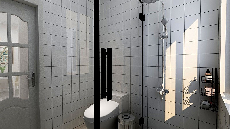 白瓷砖上墙,黑色美缝,使整个空间黑白分明,时尚洁净,透着一股冷淡风,简直是处女座的福利。卫生间虽然空间不大,但做到了功能分区:淋浴与马桶分离设计,仅一面透明玻璃,就能很好的避免淋浴时水滴带来的尴尬与麻烦,便捷生活。