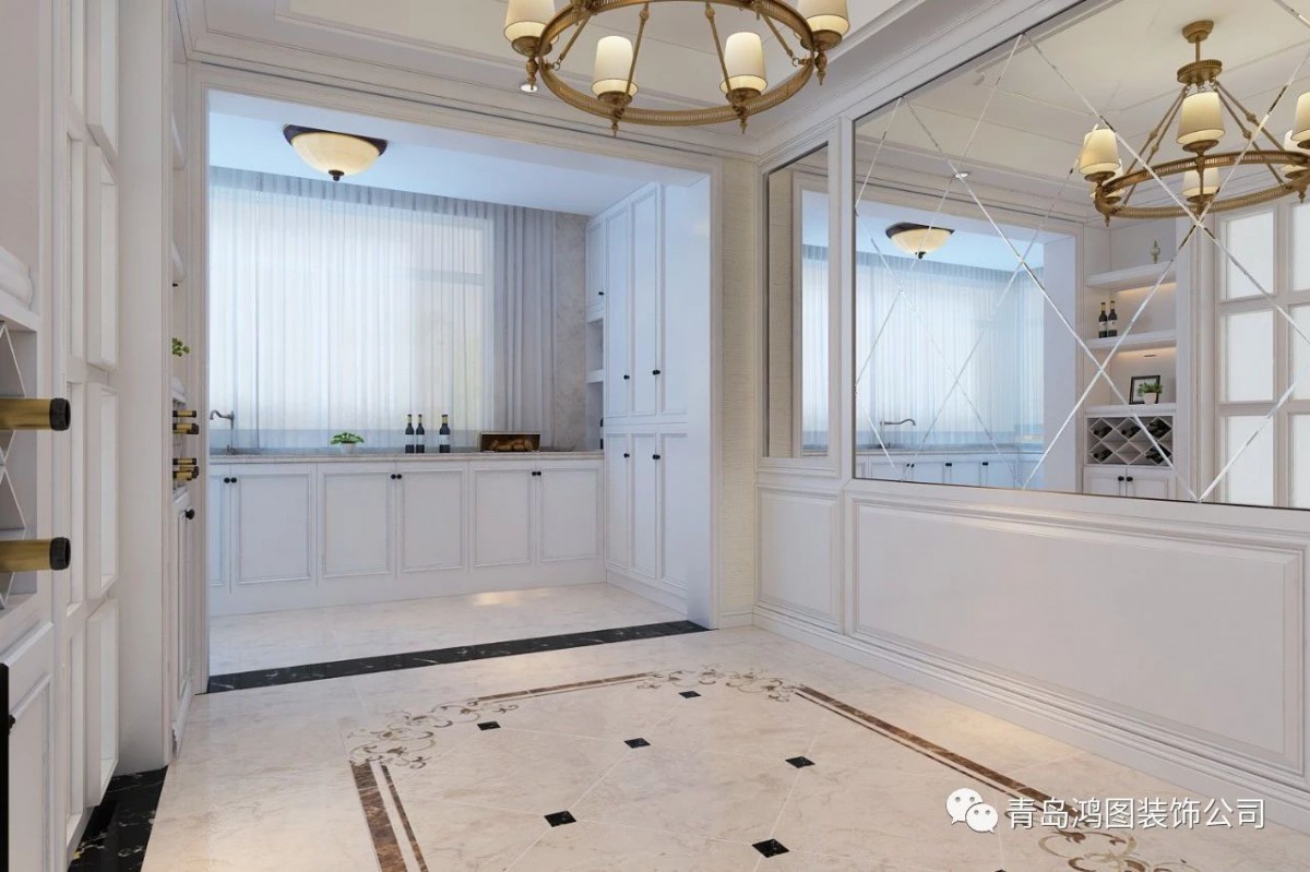 匠心独到的镜面设计,搭配复古吊灯,整个空间看起来富丽堂皇。
