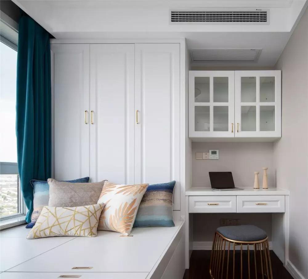 书房采用了榻榻米设计,不仅节省空间,而且具有超强的收纳功能。蓝色的加入让浅色空间多了些静谧感,营造明快而又平和的氛围。