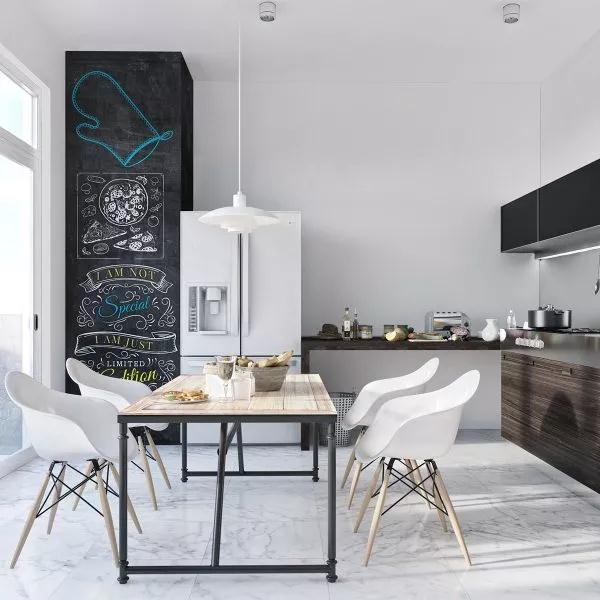 极简黑白基调将经典展现,餐桌将极简线条感展现,将年轻人个性时尚展现,北欧风格的餐椅简约而舒适。