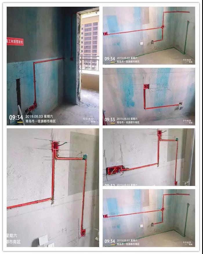 水电阶段的布局应合理整齐,开槽有序,线管排布、管卡距离、管卡的材质,强弱电有没有做信号干扰处理,这些是水电隐蔽工程的核心,鸿图真正做到每一个环节都认真、负责,让每位业主都放心、安心、省心。