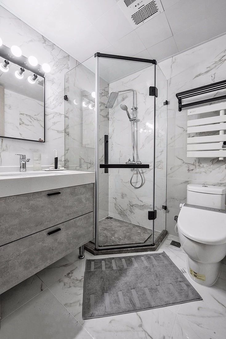 卫生间利用角落空间做了干湿分离,提高空间利用率。经典灰白色搭配,整体洒脱雅致,简约十足。