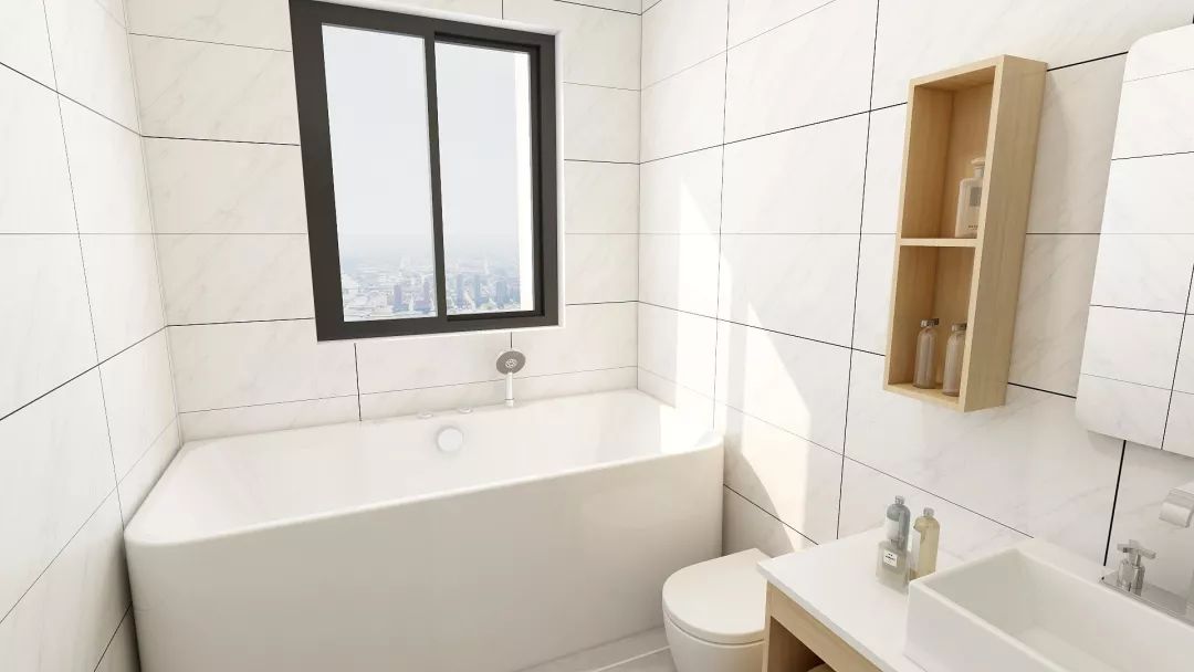 卫生间整体以白色为主,靠窗装了浴缸,巧妙的利用了角落的空间,打造了一个舒适的淋浴区,干湿分离明确。少即是多,多即是少。以宁缺勿滥为精髓,合理的简化卫生间,从简单舒适中体现生活的精致。