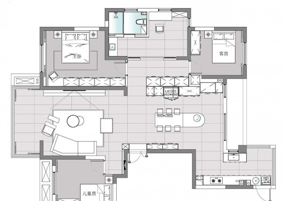 考虑到孩子成长的安全性,中岛台面做成圆弧状,趣味性立柱让孩子也爱上了和妈妈一起做烘焙,让孩子好奇的天性畅通无阻。