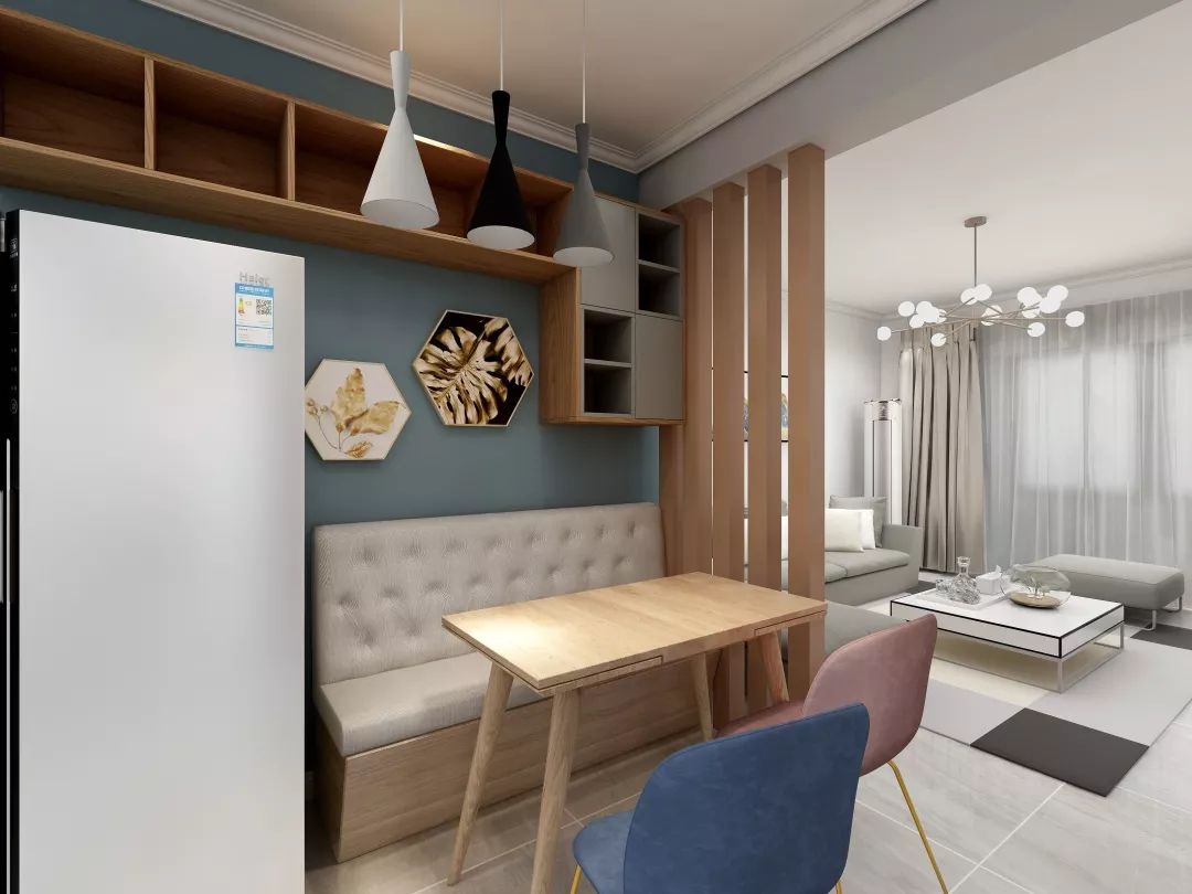 如今餐厅卡座已经成为了一种时尚的餐厅设计,搭配原木色的餐桌,为室内打造了一个温馨又浪漫具有情调的用餐环境。充分利用了与客厅之间空间,一杯清茶、一碗粥和最爱的人一起,品尝属于自己的美味故事。