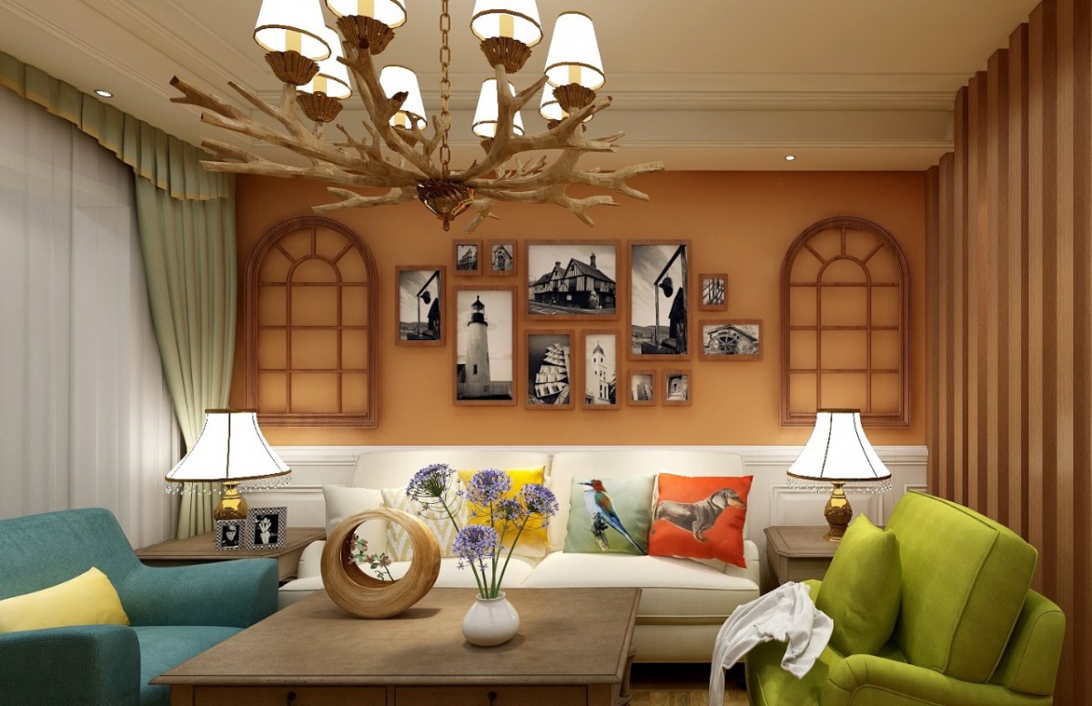 美式乡村风格带着浓浓的乡村气息,以享受为最高原则,在面料、沙发的皮质上,强调它的舒适度,感觉起来宽松柔软,家具以殖民时期为代表,体积庞大,质地厚重,坐垫也加大,彻底将以前欧洲皇室贵族的极品家具平民化,气派而且实用。主要使用可就地取材的松木、枫木,不用雕饰,仍保有木材原始的纹理和质感,还刻意添上仿古的瘢痕和虫蛀的痕迹,创造出一种古朴的质感,展现原始粗犷的美式风格。